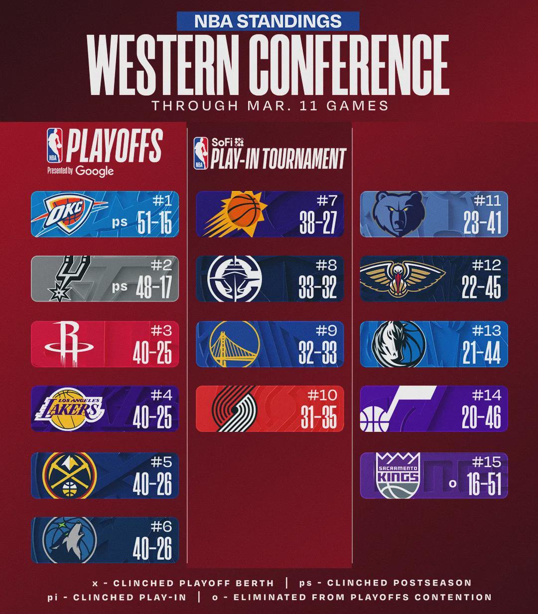 本场比赛过后,快船胜率达到50.8%,取得33胜32负战绩排名西部第八,已领先第九的勇士1个胜场,但仍落后第六的森林狼多达6个胜场。